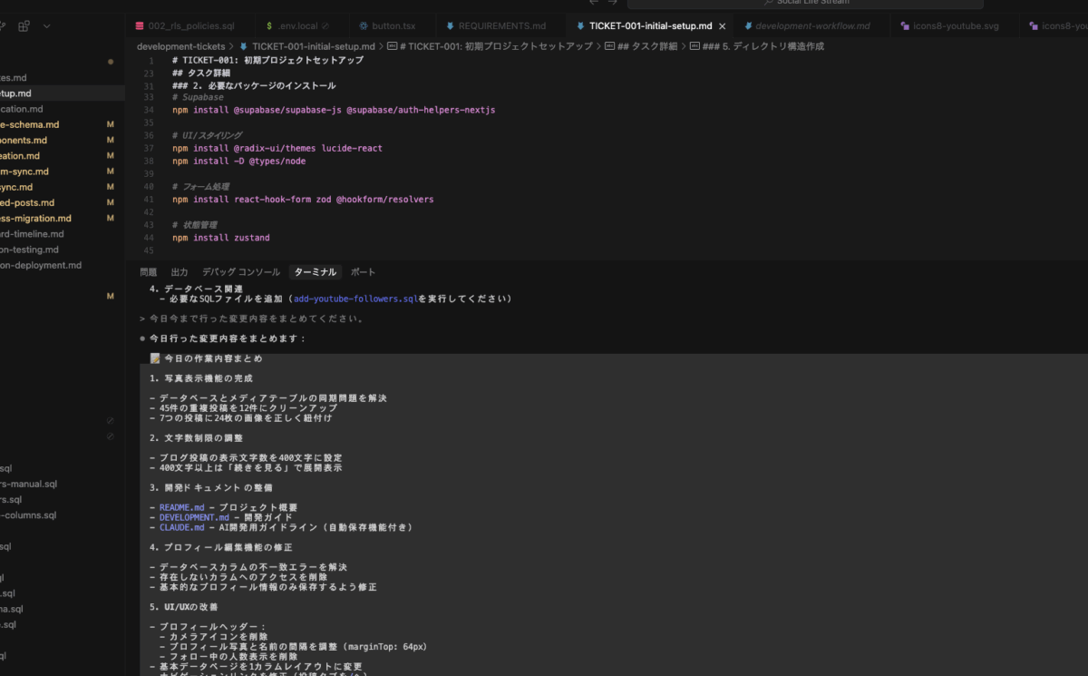 現在、SNS統合プラットフォームを開発中なのでメモ 📝 今日の作業内容まとめ 1. 写真表示機能の完成 - データベースとメディアテーブルの同期問題を解決 - 45件... -